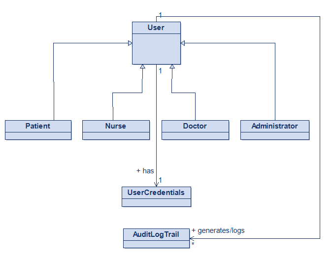 Every action — registration, profile update, login — goes into AuditLogTrail, tied to the User.